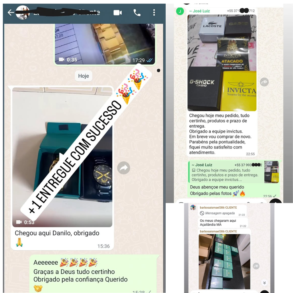 Clientes reais, resultados reais. Feedbacks recebidos após a entrega dos produtos Invictus.